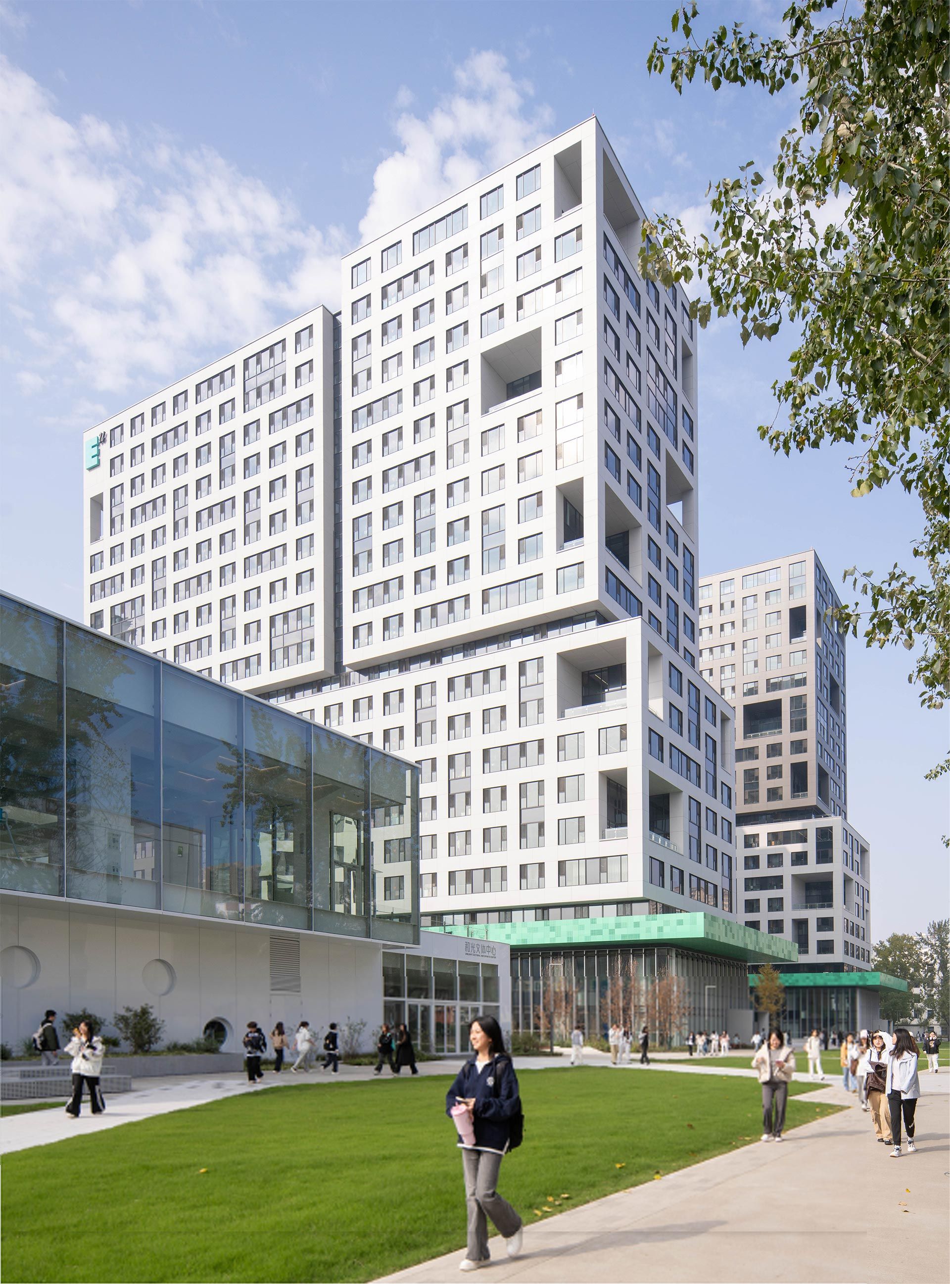 「西安欧亚学院北区 E 座教学楼、虹桥花园、南区设计与媒体中心、虹桥学习中心分别荣获 AEEDA 亚洲教育环境设计奖学习空间设计金奖、校园景观设计金奖、学习空间设计银奖、学习空间设计银奖」