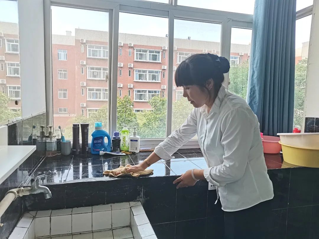 公寓阿姨们对所有的离校学生宿舍进行了系统的检查,并且帮同学们全方位的打扫了宿舍的卫生,地面、桌面、洗手台、卫生间,每一个死角都清理的彻彻底底,同时,对发现的宿舍里的设施问题,及时安排维修,保证同学们的正常使用。假期宿舍定期开窗通风,保持室内卫生清洁、空气流通。