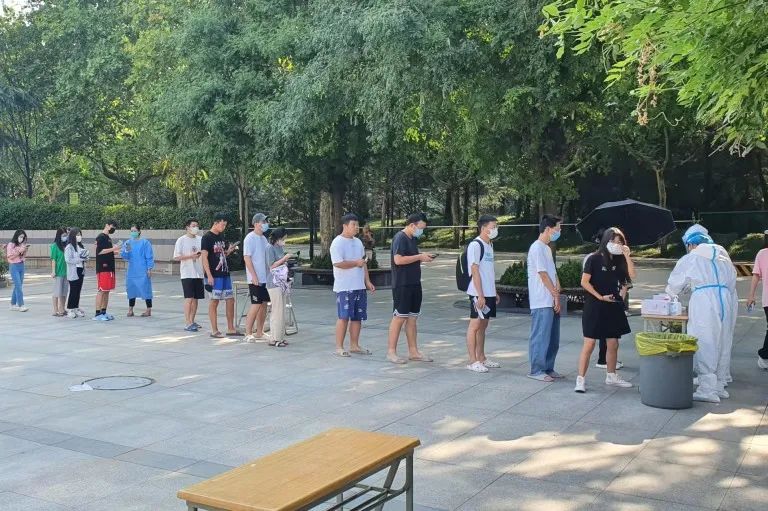 在暑假期间,学校完成了15次共计7500余人次的核酸检测,检测全程由后勤集团健康服务中心的工作人员负责完成。全校所有的留校学生、在校教工、后勤及施工保障人员,一人一消毒,撕棉签、采样、存样、封口、再消毒。在持续高温的炎热夏季,健康服务中心的工作人们身着防护服,守护着每个在校人员的健康保障。