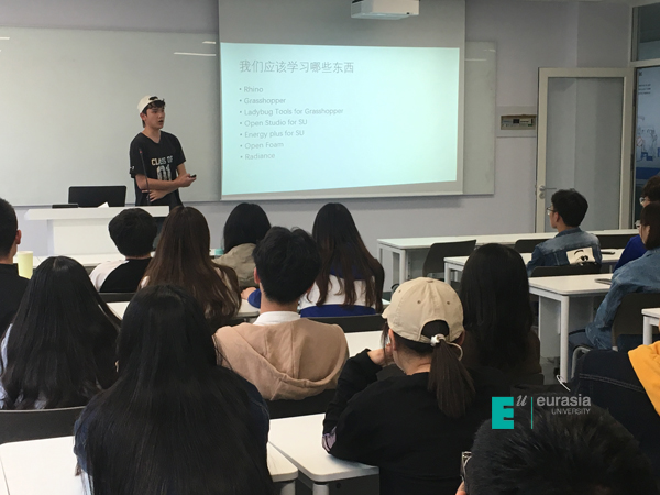 3月20日, 绿建中心承接就绿色建筑模拟项目、全国首届绿色建筑设计技能大赛项目进行分享,八个项目团队分别就参与项目的感悟、心得进行了交流分享。绿建中心团队的“西安欧亚学院南区教学楼项目”、“西安欧亚学院行政中心项目”在参加首届全国高校绿色建筑设计技能大赛中获得优秀奖。