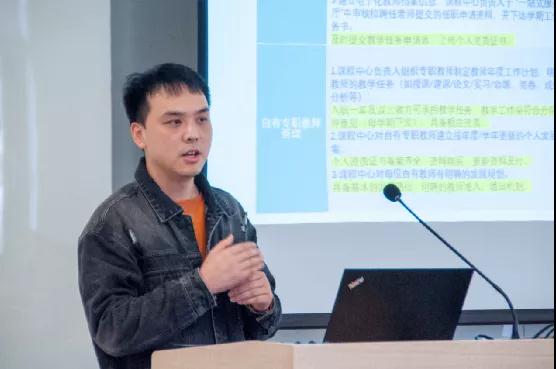 通识教育学院徐梦雪老师分享了通识课程质量评价体系。结合学校课程质量标准、课程教学评价标准和通识课程特点,分院制定了以教师队伍、教学内容、教学条件、教学方法与手段、教学管理、教学效果为主要内容的课程质量标准及评价方案,形成了12个一级指标和55个二级指标。通过分院督导/专家、课程委员会、授课教师自评等多维度进行量性评价和质性评价,评价结果及时反馈,并跟踪改进情况。该评价体系至今已经运行三期,分院通过持续开展课程评价,为课程质量分析、提高课程设计与实施质量打下基础。