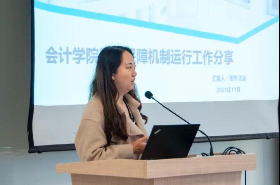 会计学院张玮助理和教务部主任刘昌老师分享了会计学院教学质量保障机制运行情况。分院搭建了一个集指挥与管理系统、质量检测与评估、信息收集与反馈于一体的教学质量保障体系,评价与实施细则涵盖了师资管理、课程资源建设、课堂教学评价、课程考核及结果评价、实习/论文质量、学生学习质量与效果等教学关键环节。分院对主要教学业务制定了标准作业流程,明确工作要求,大家按标准流程工作,极大提升了效率。
