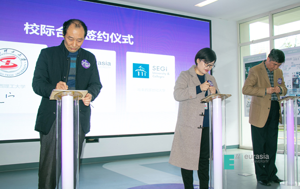质量建设方面是学院的年度工作主题,人居环境学院既关注课程质量建设,也关注应用型实践的质量建设。学院与多家高校、国际(国内)企业开展产学研合作,拓展高质量实习企业、促进学生高质量就业(升学)。来自陕西理工大学土建学院的副院长孟宏睿、马来西亚世纪大学中国办公室主任薛向阳、西安欧亚学院教务处处长张娜共同签署了校际合作协议书;来自上海颐景建设设计院的总经理王铁明、西北国际招标公司总经理助理曲伟、西安欧亚学院DCC主任王一冰共同签署了校企合作协议书;来自东京至文会社董事刘唯、Anson Group (Australia)Pty Ltd代表 Michael Xie、西安欧亚学院人居学院领导共同签署了国际校企合作协议书。与此同时,广联达科技股份有限公司西安分公司的杨彩丽女士也对广联达校园赛作出启动安排介绍。