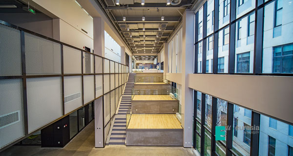 他把新落成的设计与媒体实验中心比作美国麻省理工学院的传奇建筑“20号楼”。20号楼有一个绰号叫做“煮蛋器”,当时里面安置了一大批不同学科的优秀科学家和研究人员,灵活的空间布局使得充满创意的研究人员得以彼此互动,身处其中的人拥有的充分自主权也让他们产生了无限的创新生产力,孕育出众多的科学成就。欧亚设计与媒体实验中心就像“20号楼”一样,保证了空间的开放性和灵活性。
