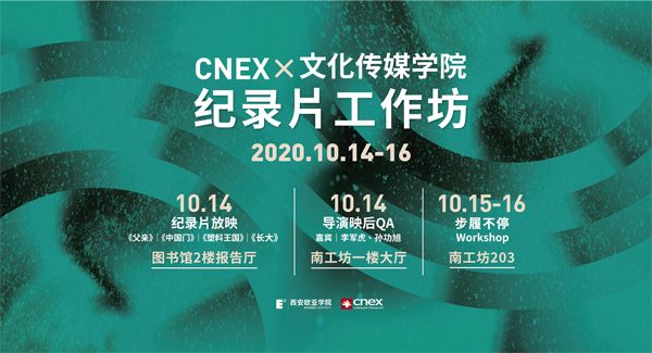 10月14日-16日,我校和CNEX联合搭建平台举办“纪录片工作坊”活动,邀请CNEX知名纪录片导演李军虎、青年导演孙功旭走进校园,举办影展、映后交流与导演工作坊等一系列活动。