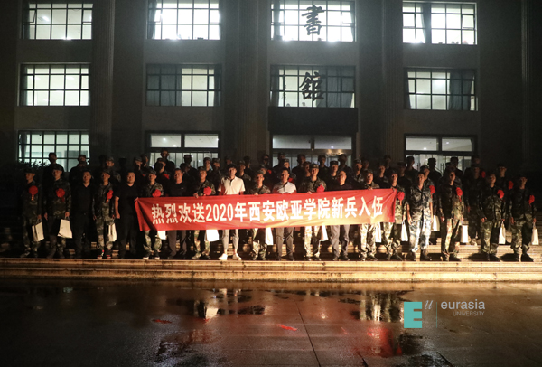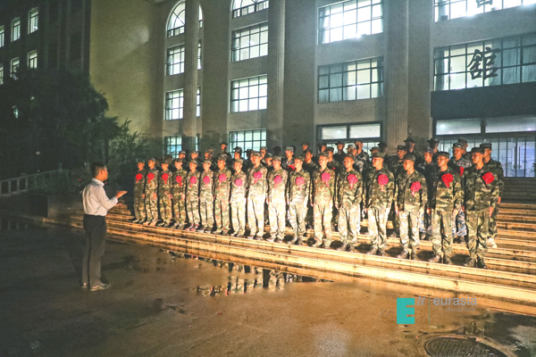 9月9日,雁塔区2020年入伍新兵结束为期一周的役前教育训练,在新兵即将奔赴部队之际,我校高职分院副院长高鹏、学生发展处副处长董杨、征兵工作站(办公室设在后勤集团安保服务中心)站长高奇、高职社区主管王先昌、专武干部李涛等一行10人,趁着夜色,顶着风雨,带着纪念品,远赴役前教育训练基地,为54名2020年新兵入伍的同学们送行,在现场组织了一场简朴而又具有特殊意义的新兵入伍欢送会。