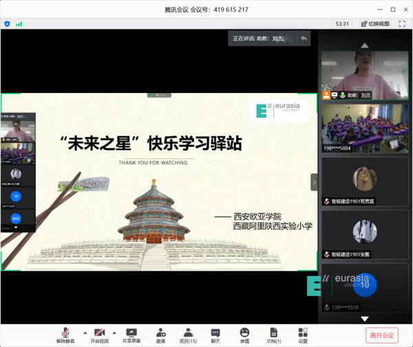 公开课过程中,西藏阿里陕西实验学校邓付宽校长、电教中心张波老师、班主任卓玛老师、我校徐缤荣老师全程组织协调,令我校大学生项目组非常感动。汉文化推广,任重道远。西安和西藏两地联手,共同托举起家庭、西藏、民族、国家的“未来之星”。