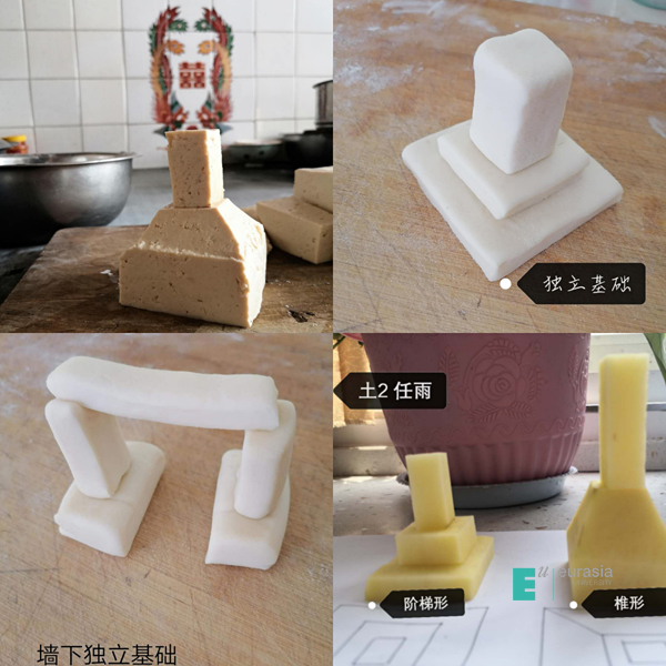 我很喜欢《房屋建筑学》这门课程,通过这门课学到了很多专业术语。老师让我们用橡皮泥、乐高、面等材料制作建筑基础的模型,非常有趣,班里同学脑洞大开,还有同学用泥巴、用豆腐等材料做出了很逼真的独立基础,让我们对基础的不同类型印象深刻。