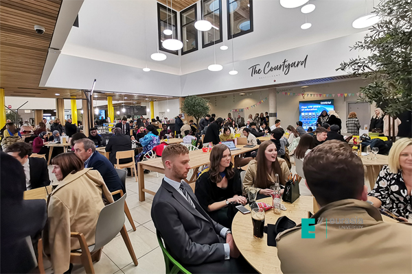 考文垂大学名为“The Hub”的学生中心,大小不一、功能全面、配色大胆的各个用餐区、讨论室和文创商店错落其间,学生可以一边学习一边用餐、讨论或休息。