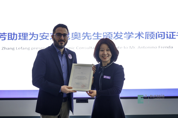 我校校长助理张乐芳对各位嘉宾的到来表示欢迎。Links基金会&欧亚新工科合作启动仪式,张乐芳助理为Antonino教授颁发了学术顾问的荣誉聘书。张乐芳介绍,Links Foundation是享誉全球的基金研究机构,是意大利政府资助的为都灵理工大学输送高素质人才的综合性组织;以提供多元的技术(包含软件开发、建筑规划、教学、咨询等)和商业模式加速企业与政府的创新过程为目标。欧亚学院致力于为学生提供高质量的教育服务,倡导国际化、应用型、新体验的教育理念,我想双方未来在人才培养、教育咨询、创新项目、实习就业等方面会有非常广阔的合作前景,期待双方的合作。