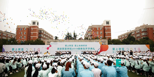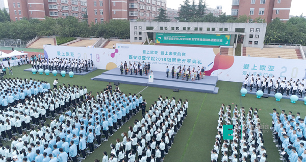 9月12日上午9点,2019级新生开学典礼在我校体育场隆重举行。学校党政领导,学术委员会及学位评定委员会委员,各分院、职能处室领导,各学科专家教授,及优秀教师、辅导员代表们,共同见证了5447名新生加入西安欧亚学院。典礼由学生发展处处长周岚主持。