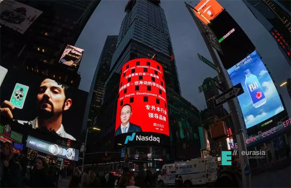 纽约当地时间11月18日18时,我校浙江校友会会长、西培教育总裁毛益飞先生,荣登美国纽约时代广场纳斯达克巨幕。