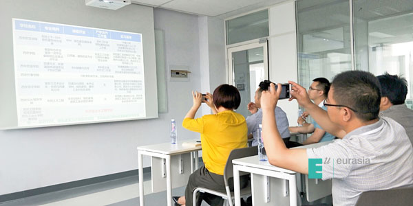 国际项目对接人张坤对工程管理(本硕连读)国际班的招生要求及特色进行介绍,得到招生办老师的特别关注。BIM工作室负责人麻文娜、绿建工作室负责人杨帆、项目咨询工作室负责人赵敏、不动产与咨询工作室负责人高蓝分别进行汇报,对工作室特色运营模式、人才培养优势、产学合作项目、助力学生发展等方面进行汇报。
