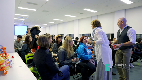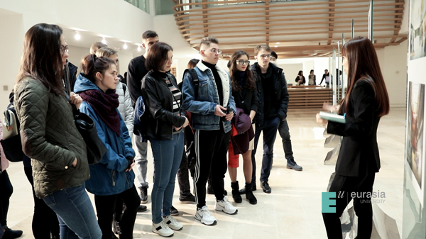 2018年11月30日早,为了让俄罗斯学生们更好的熟悉校园,尽快了解及适应我校的校园底蕴和校园生活,国合中心的相关老师作为讲解员带领学生们穿梭在校园内,从讲解行政中心建设之初背后的故事,到艾德艺术学院灵感与美感聚焦的展厅,再到金融学院教学与实践相结合的新型教育模式课堂;从大学生活动中心这个专属于社团热血青年的聚集地,到我校中心位置且拥有着特殊设计艺术感的图书馆,再到汇聚全国各地美食的金桥餐厅,在每一处建筑,甚至每一个角落的停留和驻足,游学生都会表达出强烈的兴趣和想要了解更多关于欧亚的热情,而这种正能量的情绪也同时在每一个校园行的参与者间流动。