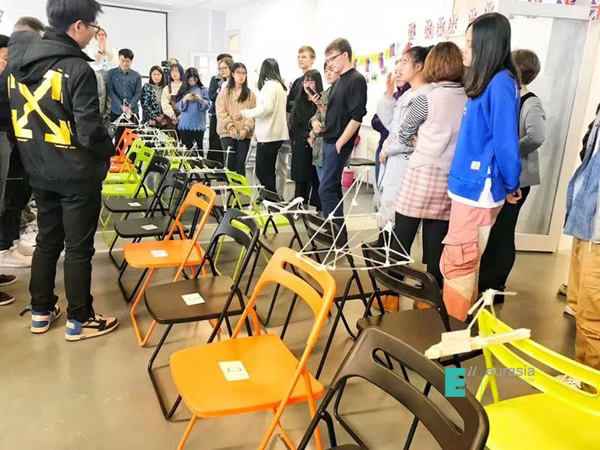 在上午这堂“安静”的讲座之后,下午由外教Imogen,Chris和Yesenia共同组织的这个“不安静”的LE英语角活动可谓是调动了游学生们全部的积极性。其中一个游戏是学生们需要用自己手里仅有的材料搭建出一座桥,这座桥要能足够承重,而最能承重的组将获得胜利。俄罗斯学生们和中国学生们合作建组,一起齐心协力完成任务,最后的成果也让人惊喜连连,虽然有的组搭建的桥并不十分承重,但是却赢在更有建筑设计美感方面,所以也是值得称赞和鼓励的。