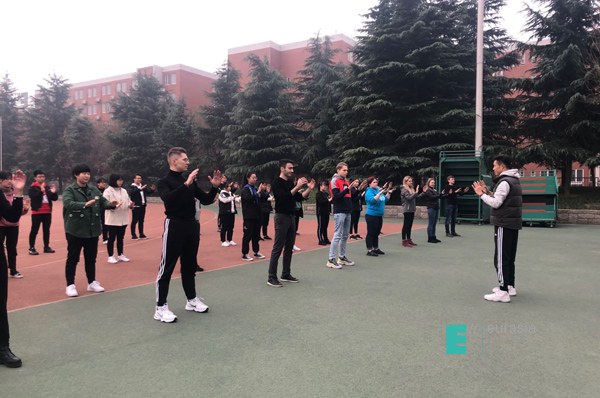 当天下午的活动安排是中国传统腰鼓及太极拳的体验课,俄罗斯学生们与中国学生们一对一在老师的指导下,记忆并不断练习动作要领,最后的汇报表演还真的是非常有模有样,在这种对于中国传统文化的习得过程中,游学生不仅体验到了有别于西方文化背景下的东方文化的力量与魅力,也同时解锁了与欧亚学生们之间最纯粹最良性的友情互动。