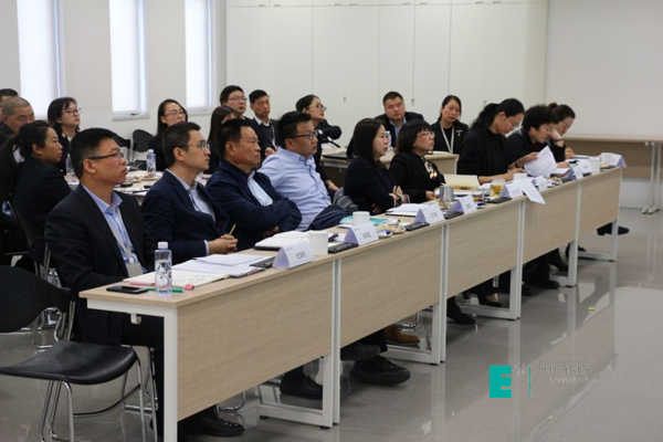 随后进行演讲的是强建旗, 强建旗老师演讲的题目是“为欧亚梦的实现而不懈努力”。首先,强建旗阐述了对学校战略和组织文化的理解与认知;接着通过能力模型,从规划设计、组织建设、服务提升、项目管理、关系维护几方面,说明了个人对岗位工作内容的认知;最后,基于学校战略要求下,提出对后勤未来工作的思考,立足当下,面向未来。