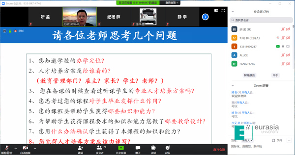 报告开始,张老师向所有参与分享的教师提出人才培养、课程设计、学生能力等方面一系列的问题,帮助老师对本次报告内容进行思考。随后张老师从人才培养方案的变与不变、人才培养方案的研制与修订、成果导向(OBE)教育的内涵、人才培养方案的反向设计思路、人才培养方案研制常见的问题五个角度,向大家展开本次分享。
