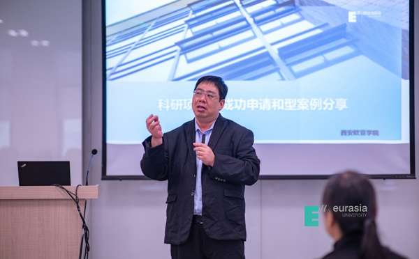 胡建波董事长针对此次活动做出重要指导讲话。首先,胡董事长为在座的科研团队及骨干老师们介绍了学校第二个“四四二”战略的最新布局情况,秉承“以学生为中心的应用型人才培养”做到卓越、“建设在地国际化大学项目”做出特色的同时,将科研加入到战略计划中。 他明确提出,科研发展不是一蹴而就的事情,需要运用“种树思维”,从建设科研平台和团队入手,逐步发展科研,使我们的科研工作逐渐从薄弱走向合格,未来终将走向优秀。其次,通过工作积极性与回报率的关系,引出职业承诺,并表明今后欧亚将关注教师发展,为老师们提供更多的平台和机会,让喜爱科研的老师能有机会实现个人价值。