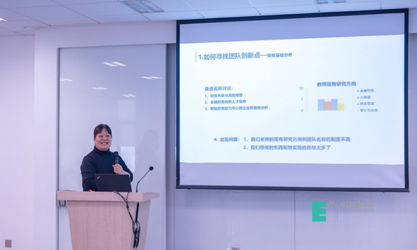 刘月副教授为大家总结分享了申报陕西青年创新团队的成功经验。她明确表示,正是在现有校级金融团队和财会团队融合发展的基础上,突出应用型高校服务区域经济的特色与优势,顺利寻找出团队真正的创新点,从而在众多创新团队中脱颖而出。刘老师结合自己团队的申报经验,对团队研究方向、形成背景、合作机制、学术成果、创新之处等申报书主要内容进行详细解读,为其他团队未来参与申报提供了有价值的参考建议。