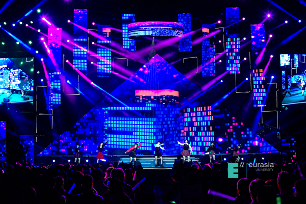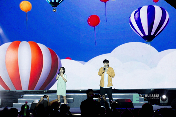 最后的大合唱《星辰大海》将歌会气氛再次引向高潮,我校建校25周年暨迎新生歌会圆满结束。整场歌会精彩不断,高潮迭起,赢得台下观众阵阵掌声和欢呼声。今晚,用短短近2个小时的时间,共演唱了18首不同语言的歌曲,展示了独唱、说唱、阿卡贝拉、小合唱等多种音乐形式。让观众们从歌声中感受到欧亚的同学们对欧亚的热爱、对音乐的喜欢、对艺术的追求!让观众们看到了欧亚学子用歌声表达了对欧亚文化的理解与展示,热情似火,活力四射,生动诠释了欧亚和而不同的教育理念。