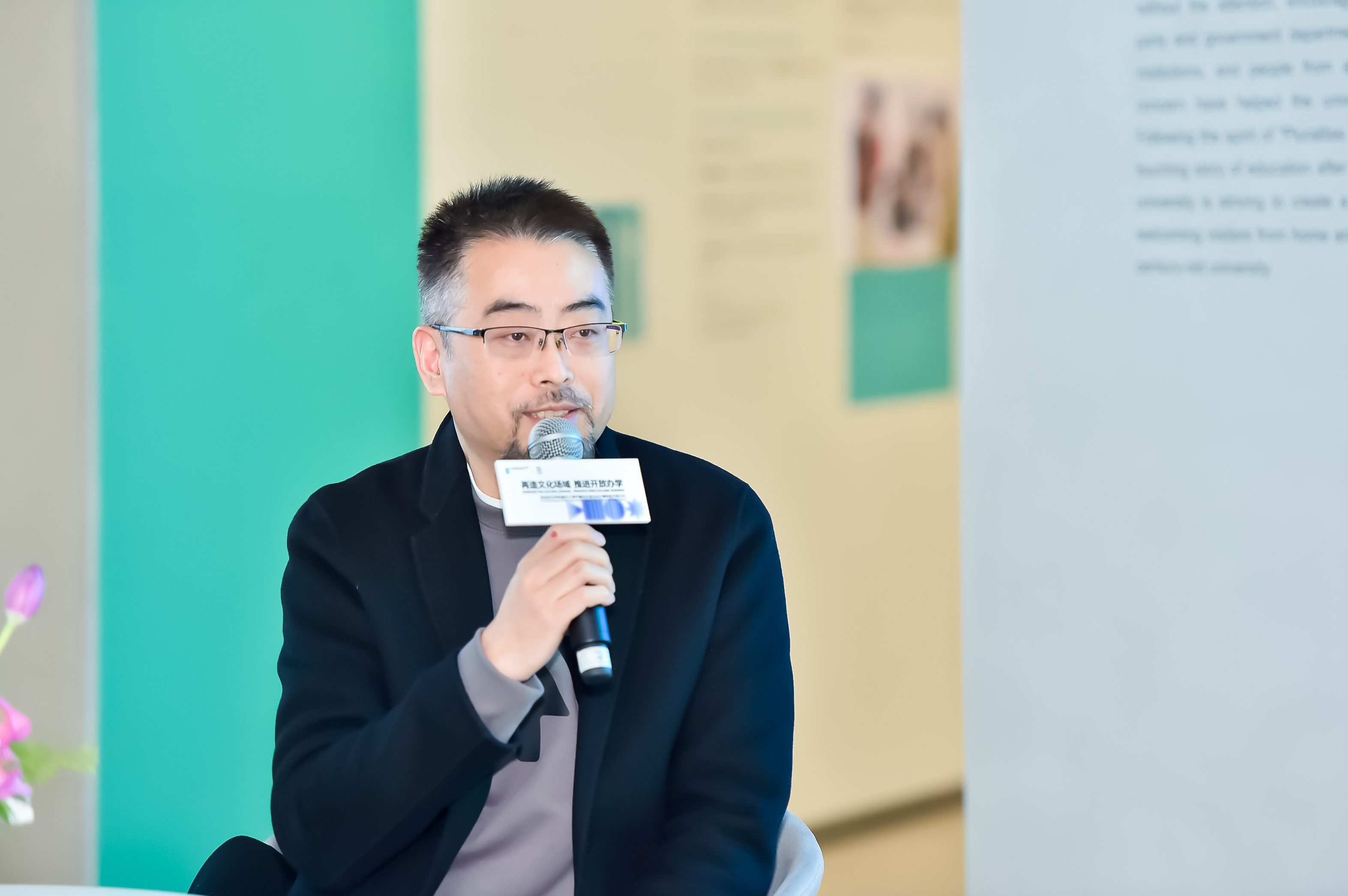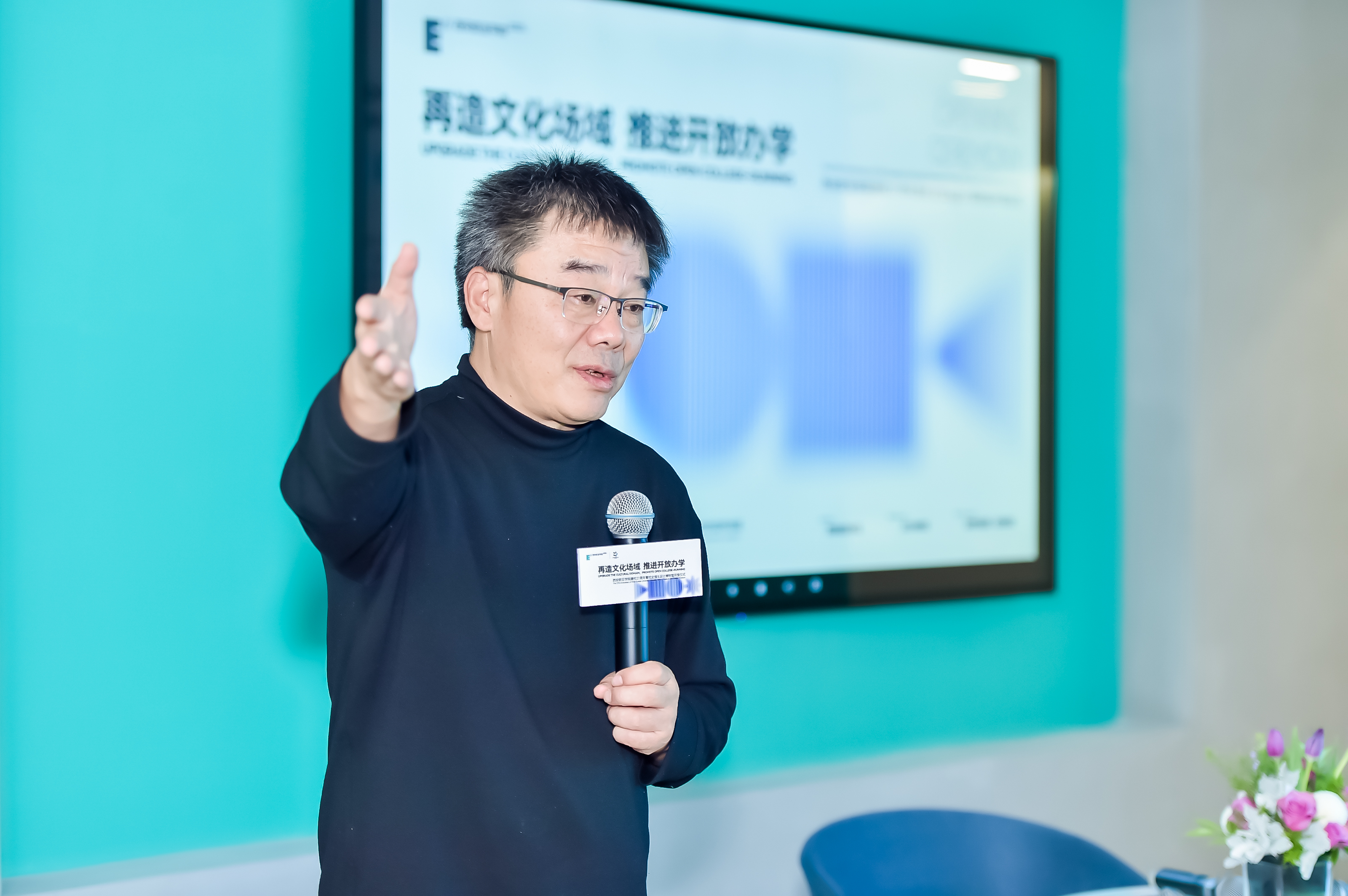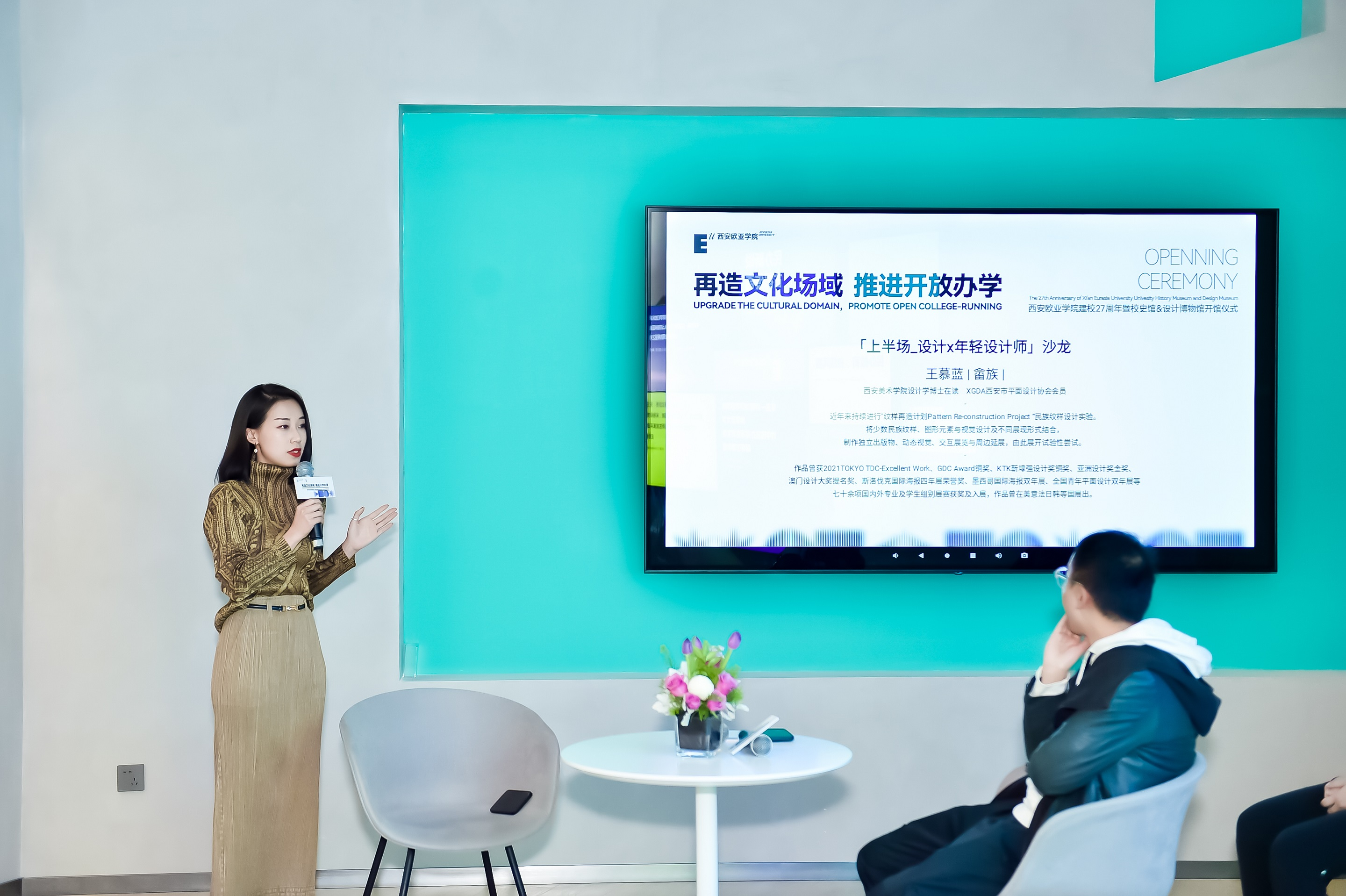 展览策展人、YIMU STUDIO创始人黄飞春先生为展览揭幕致辞。“此次展览的初衷是为了从设计的角度,为设计、城市更新、未来生活方式带来启发,基于欧亚开放办学理念的践行,让大师经典作品真正落地于校园,与师生产生更多火花。希望更多的设计实践团队,能够持续和西安欧亚学院产生更多的产学研合作。”