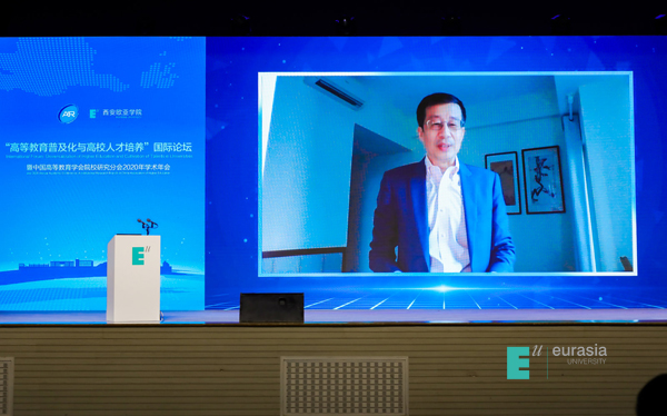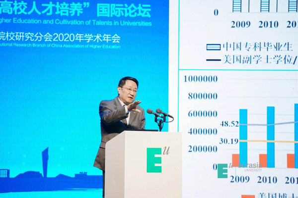 我校创办人、董事长胡建波教授致辞感谢各位嘉宾的到来,并表示我校愿意作为实验基地,与各位专家携手共同研究和探索普及化背景下高等教育的全新质量内涵和实践路径,为推动我国高等教育现代化贡献力量。