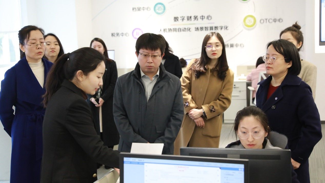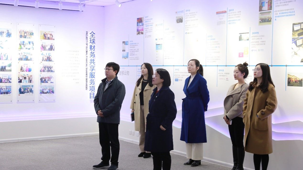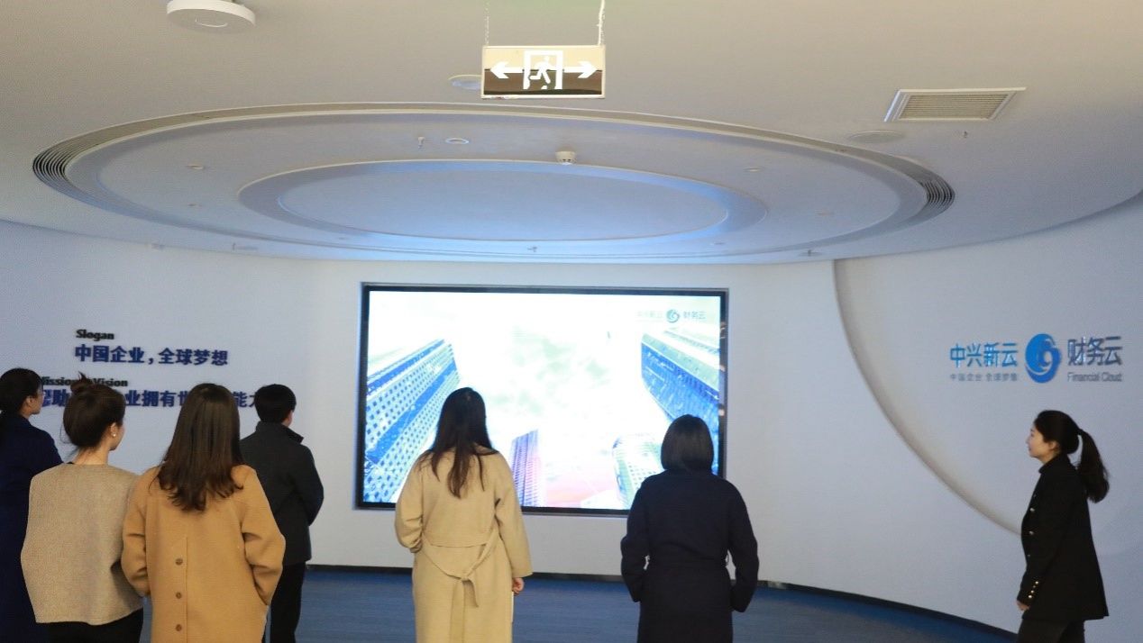 我校会计学院走访组一行先后参观了财务云展厅和数字财务中心。在财务云展厅中,中兴新云李珮萍介绍了财务云发展历程、财务共享建设与运营管理,基于共享服务的财务云平台,包含费用报销、采购到付款、订单到收款的业财一体流程信息化,中兴新云研究成果及行业案例。在数字财务中心,走访组则对智慧财务共享服务中心进行了现场观摩,了解费用中心、资金中心、PTP中心、税务中心、OTC中心、档案中心以及核算中心的运作模式,同时亲身体验了中兴新云企业经营驾驶舱满满的科技感。
