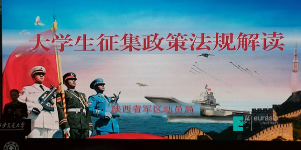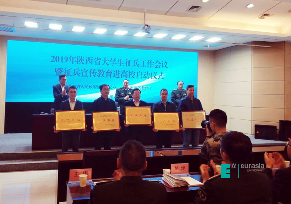 陕西省主会场设在省教育厅机关办公楼一楼第一会议室,陕西主会场参会人员:省委宣传部、省政府办公厅、省教育厅、省公安厅、省卫健委、省财政厅、省人社厅、省退役军人事务厅有关领导及业务部门负责人;省军区有关领导和征兵工作业务部门负责人;西安交通大学、陕西师范大学、西安科技大学、延安大学、西安工业大学、西安欧亚学院等15所院校分管领导和征兵工作牵头部门负责人(其他人在本校参加),西安欧亚学院等15所院校获得全省“高校征兵工作先进单位” ,这是陕西省首次开展表彰全省高校征兵工作先进单位。