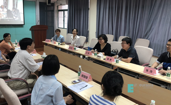 王艳校长助理介绍了我校基本情况,谈到商科的特色是与产业结合,金融学院的大数据研究所、会计学院的会计师事务所、物流学院的阿里巴巴订单班、管理学院的楚汉小镇,处处与行业和产业对接。作为应用型本科,欧亚学院将教师分成“教学型、教学+服务、科研+产学研”三类,鼓励教师参与项目,实行“旋转门”计划,使教师在企业是技术人员,在高校是教师。最终通过项目实施产生案例和成果,申报课题,从而提升教师科研能力。
