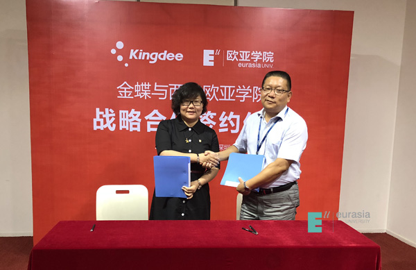 我校校长助理王艳在致辞中表示,欧亚学院自1995年建校以来,秉持“国际化、应用型、新体验”的办学理念,坚持做教育改革创新的引领者和先锋,作为教育部“教育信息化优秀试点单位”,在信息化推动教育教学改革上发挥积极作用,在行业内处于领先地位。这也为本次校企合作奠定良好契机,探索金蝶与欧亚校企合作新模式,打造生态圈。为我校商科四个分院紧随大数据、人工智能、云会计、财务共享、财务机器人等新的经济环境,打破专业之间的壁垒,构造出“通识教育+商科教育+专业教育+实践”的商科人才培养体系提供良好的平台支撑。从而实现人才培养和教育创新,打通从教育入口到出口的可持续发展链条。