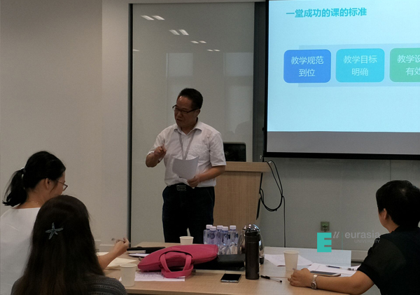 也正是孙老师的培训交流解开了我们先前的问题,她指出,教学督导首先应该督好自己,应该是一名优秀的教师,如果要给学生一瓢水,那么我们老师就应该努力成长为一条河。作为老师,从根本上讲,首先应该对学科知识的过去、现在和未来有总体的把握,熟悉学科的整体脉络和现实应用,既要有深度还要有广度,同时还能深入浅出的呈现出来,以易于理解的方式让学生从中受益!在此基础上,以“观察动态、指出问题、引导教学”为目的,把握好课堂教学的四个观测点---教学规范、教学目标、教学设计和教学效果,建立以“课堂效率、知识渗透性、内容的可辨识性和互通性”为有效课堂的评价标准,做好课堂素材的分型,把握好学生特点,厘清教育目标实现程度,从整体上客观分析课堂,并及时与授课教师积极沟通反馈,做好督促、引导教学的工作。