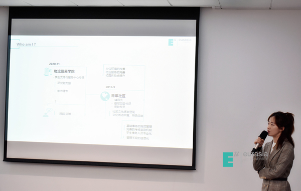 来自孔子青年社区的辅导员武倩,以《恰如其分的美》为主题,分享了自己从社区化改革前后,自己在分院和社区获得的不同角度的成长,探索了辅导员在欧亚学院的角色定位,并在工作中与学生产生共鸣,遇见彼此的美。