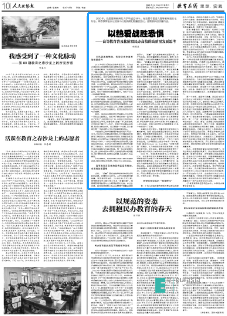 编者按:2020年,我国高等教育毛入学率超过50%,标志着中国进入高等教育普及化阶段。高等教育普及化发展不仅是规模和数量的变化,更需要新的质量内涵。12月23日,《人民政协报》教育在线周刊刊发西安欧亚学院创办人、董事长,中国民办教育协会副会长胡建波教授的文章《以热爱战胜恐惧——高等教育普及化阶段民办高校的高质量发展思考》,其对高等教育普及化阶段的质量特点和西安欧亚学院的高质量发展探索,作了深入的阐述和分析。现全文分享如下: