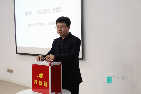 2020年12月16日下午14:00-15:00时,民盟西安欧亚学院总支换届大会在行政中心二楼东会议会隆重召开。参加本次会议的省盟领导有:民盟陕西省委张红秘书长、民盟陕西省委组织部蔡敏之部长、郑哲副部长;参加本次会议的学校领导有:校党委于孟晨书记,民盟中央教育委员会副主任、陕西省第十二届政协常委、陕西省决策咨询委员会委员胡建波董事长,校党委委员、分管统战工作的王晓华校长助理。