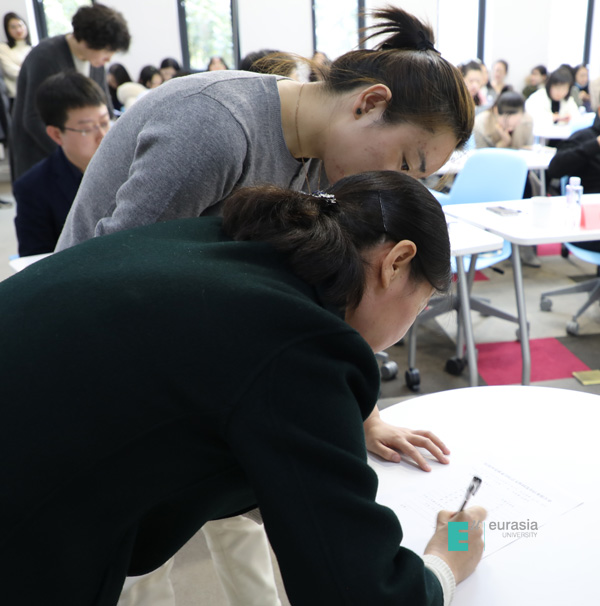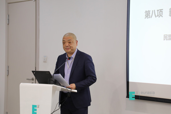 接下来,胡建波董事长发表了讲话,他首先表达了对欧亚民盟团体的重视程度,承诺会定期召开沙龙分享,听取教职工意见,把民盟组织办成能够听取教职工意见等民意的有效平台。胡董事长饱含深情地回忆加入民盟20余年,进行参政议政,带动欧亚学院向前发展。他民盟总支寄予三点期望:一是加强五个坚持。即,坚持立德树人,加强政治站位;坚持高质量特色的探索,多元化,富有特色,强调442战略的“质量,质量,质量”的核心,办人民满意的大学;坚持职业学校的办学定位;坚持开放、透明、公平、科学的学校治理;坚持党的建设,要求和党中央保持一致。二是重视组织发展,开展组织活动,组织要发挥作用,7位新当选委员要充分发挥职能,使民盟组织更加有活力及凝聚力。三是关注民生热点,积极开展参政议政,并加强扶贫、教育改革的创新。
