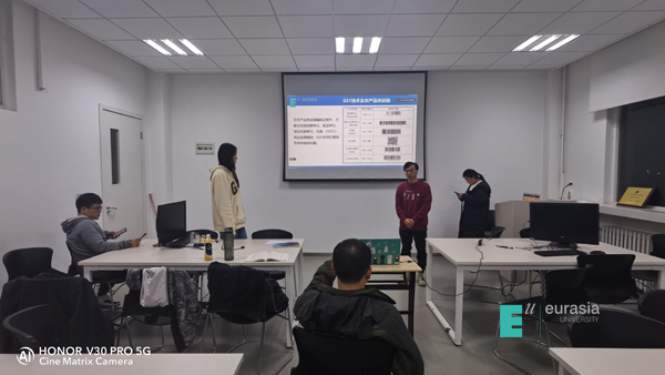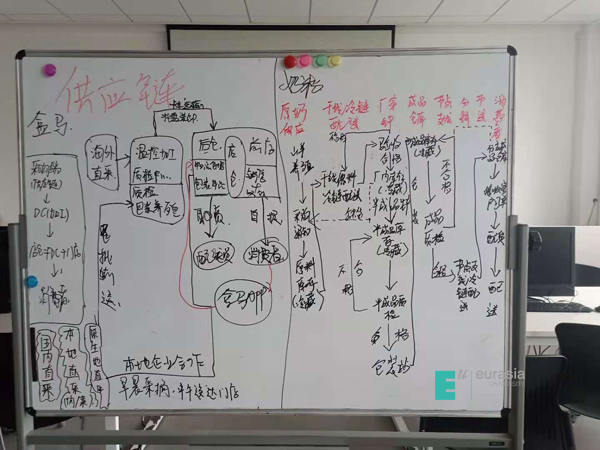全国大赛团体赛决赛前夕,队员们一方面持续修改论文,一方面准备答辩PPT,为了拿出最好的作品,队员们精益求精,在老师的指导下,前前后后共修改8个版本之多,经过多轮讨论修改,最后敲定最终版,最终在11月18日上交至组委会。随后每个队员分配任务,反复串稿,为了使语言凝练简洁、专业精准,大家一遍一遍的彩排,一遍又一遍的修改,直至比赛的前一晚还在教室排练到晚上凌晨12点,只为不出差错达到最好效果,多次的努力练习,换来的是正式比赛流利顺畅,PPT讲解过程十分顺利,专家评委也不时点头赞许,论文答辩环节队员们也表现出色,方案作品更是获得了评委们一致好评,认为我校学子所提解决方案对当今新冠疫情背景下的食品供应链管理问题有一定的借鉴意义和应用价值,经过一天的激烈比拼,最终我们欧亚代表队捧得团体赛最高金奖!