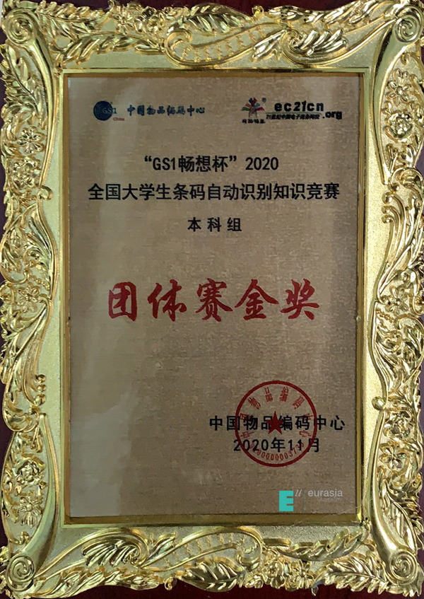 今年,由于疫情原因,第十四届“GS1畅想杯”2020全国大学生条码自动识别知识竞赛从3月份一直持续到11月,是史上最长周期的一届竞赛,全国大学生自动识别知识竞赛团体赛需要经历个人赛初赛、个人决赛、团体赛入围赛(专项实践+ 论文撰写)、团体决赛四个比赛赛程,每个环节都必须指导老师和队员们全力投入才有可能取得收获。欧亚学子历时9个月的紧张比赛,2020年11月22日比赛圆满结束,我校代表队从612个队伍中突出重围,物流管理专业本科组(成员:詹雪、付景辉,朱力军,蒋晓彤,指导老师:姚军、雷磊)代表队成功入围本科组团体全国总决赛,经过激烈的线上论文答辩《GS1在企业全程供应链中的应用》解决方案,获得了评委们高度评价,认为我校所提方案对当今新冠疫情背景下的食品供应链管理问题做了深刻的剖析,提出的基于食品“绿码”的GS1编码供应链解决方案,对实际应用有很好的借鉴意义,最终,欧亚学院学子在激烈地竞争中荣获团体赛本科组最高荣誉---团体赛金奖!