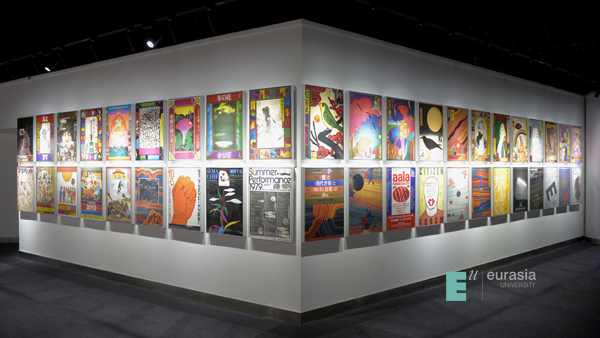 设计博物馆中占比最多的作品当属粟津洁、施德明、久谷政树、斯特凡•施德明、尼古拉斯-卓思乐等设计大家的海报作品。粟津洁纪念室专为展示粟津洁海报作品而设立,厅内的作品大部分为版画作品,厅外墙壁上是粟津洁为“文学座公演”剧场设计的演出海报。欧亚设计博物馆馆长党晟先生在日本京都造型艺术大学求学期间,曾受教于粟津先生门下,受粟津杰先生影响深远。