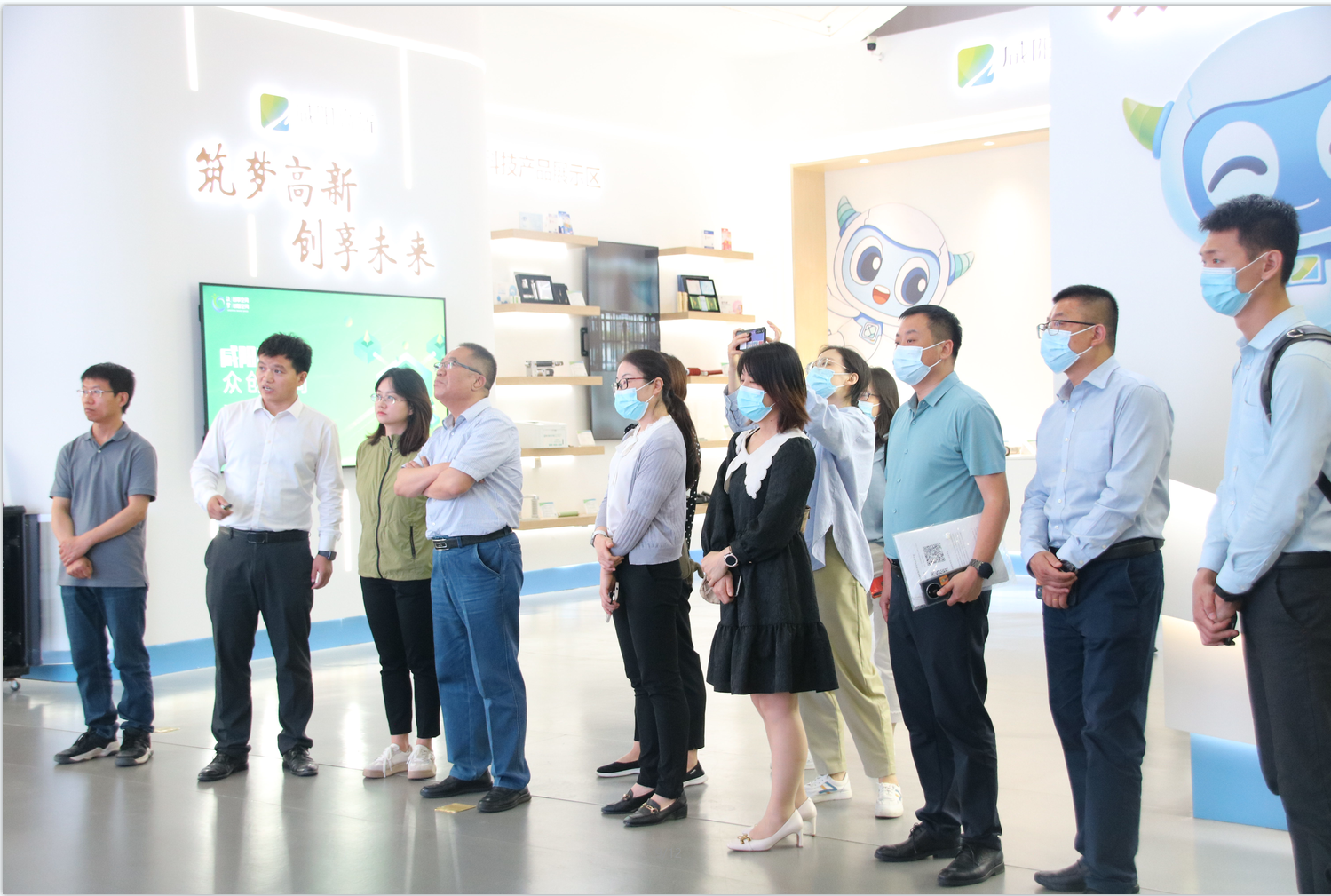 调研首先实地走访了中国电子西部智谷项目。咸阳中电西部智谷实业有限公司任滨副总经理详细介绍了项目规划情况、工程建设、项目运营等情况,随后来到咸阳高新区众创空间(筑梦·创享空间、筑梦·创智空间),参观空间内部双创环境及双创微展厅,了解空间运营模式、企业发展情况及高新区未来发展规划。并与伟景机器人、鑫创互娱等空间入驻企业详细交流。