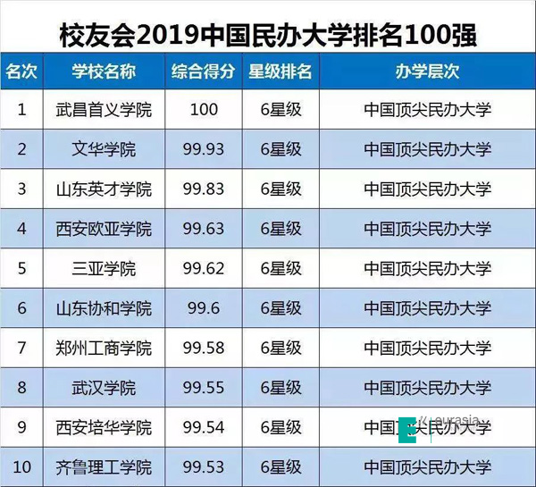 (图二)2019中国民办大学排行榜10强榜单