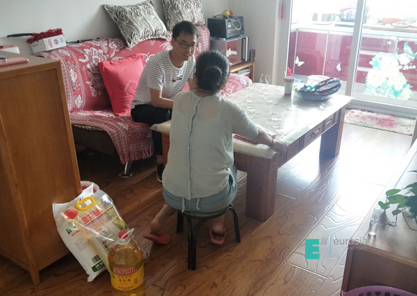 (图二)我校社区助理雷方超(后)与学生家长了解家庭情况