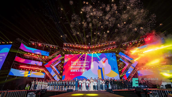 10月16日晚7点,我校2019年“爱上欧亚,爱上未来的你”迎新晚会在体育场精彩上演。我校各级领导,嘉宾,校友及在校学生,共一万余名观众共同观看了本场晚会。