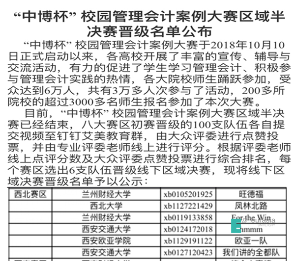 本次大赛会计学院ACCA项目赵常霞、金余康、刘宜青、李舒然与财务管理专业陶承锐五名同学组成“欧亚一队”参加大赛进行给定案例的全英文案例分析,从2018年12月至今历时3个月,经过专业评委教师层层评审和钉钉在线视频投票选拔,我校参赛队伍成功晋级,我校是西北赛区八强中唯一一所上榜的民办类高等院校。
