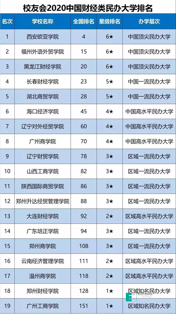 2020中国财经类民办大学排行榜10强榜单