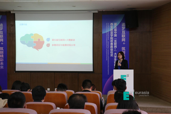 为响应教育部第五届中国“互联网+”大学生创新创业大赛的号召,激发我校学生创新创业的热情,达到以赛促教、以赛促学,激发学生的创造力,我校于2019年3月29日举办了以“追梦互联网+ 筑创精彩未来”为主题的第五届“互联网+”大学生创新创业大赛西安欧亚学院校赛启动仪式。