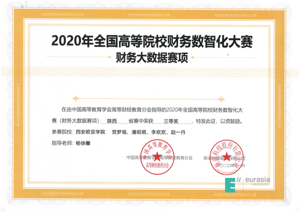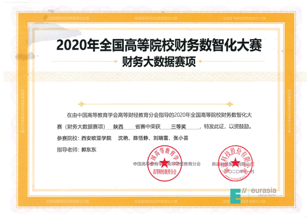 由于疫情原因,此次比赛采用了线上比赛的方式进行,主要分为理论知识,实践操作能力以及线上答辩三个考核部分,西安欧亚学院会计学院综合考虑遴选了三支参赛队伍,三支队伍在侯玉荣、杨徐馨,郭冬冬老师的带领和指导下,同学们经过两周的艰苦备战,分别荣获一项一等奖和两项三等奖,为我院再添佳绩。