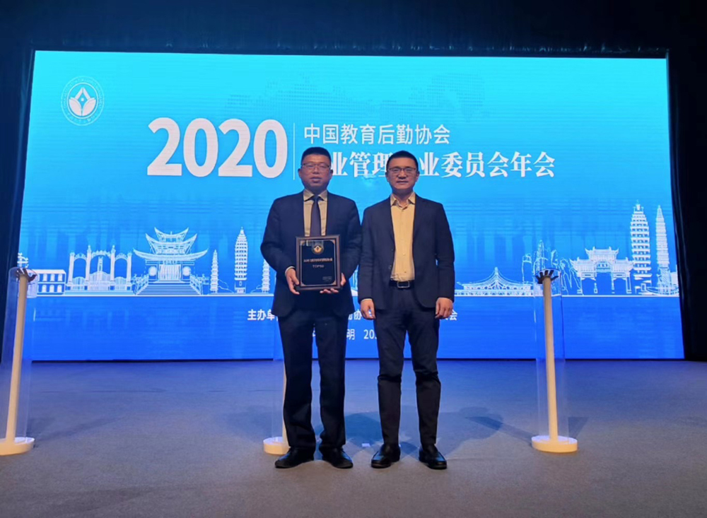 在年会表彰环节中,我校后勤集团荣获“2020全国学校物业管理机构50强”,同时,我校后勤集团总经理任龙刚荣获“全国高校疫情防控物业服务先进个人”。