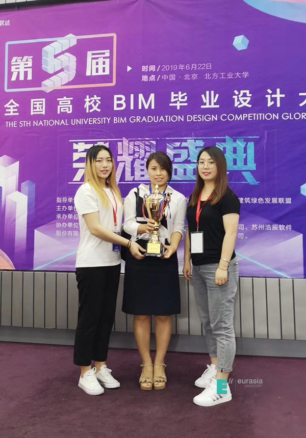 本届大赛,共计560余所院校参加,参赛团队1100多支,共提交1003份作品,西安欧亚学院人居环境学院BIM中心参赛团队—欧亚猎豹战队,团队成员是李卓、周玲、杨萌、何仁杰、齐广泽五位2015级同学,从大赛任务指导书下发,成员们认真备赛,分别进行了三个阶段作品提交,6月5日公布获奖名单,取得一等奖后,参赛成员再接再厉,于6月21日赶往北京参加一等奖答辩,最终获得本次大赛特等奖。 这也是我校在毕业设计大赛的赛场上取得的最好成绩。