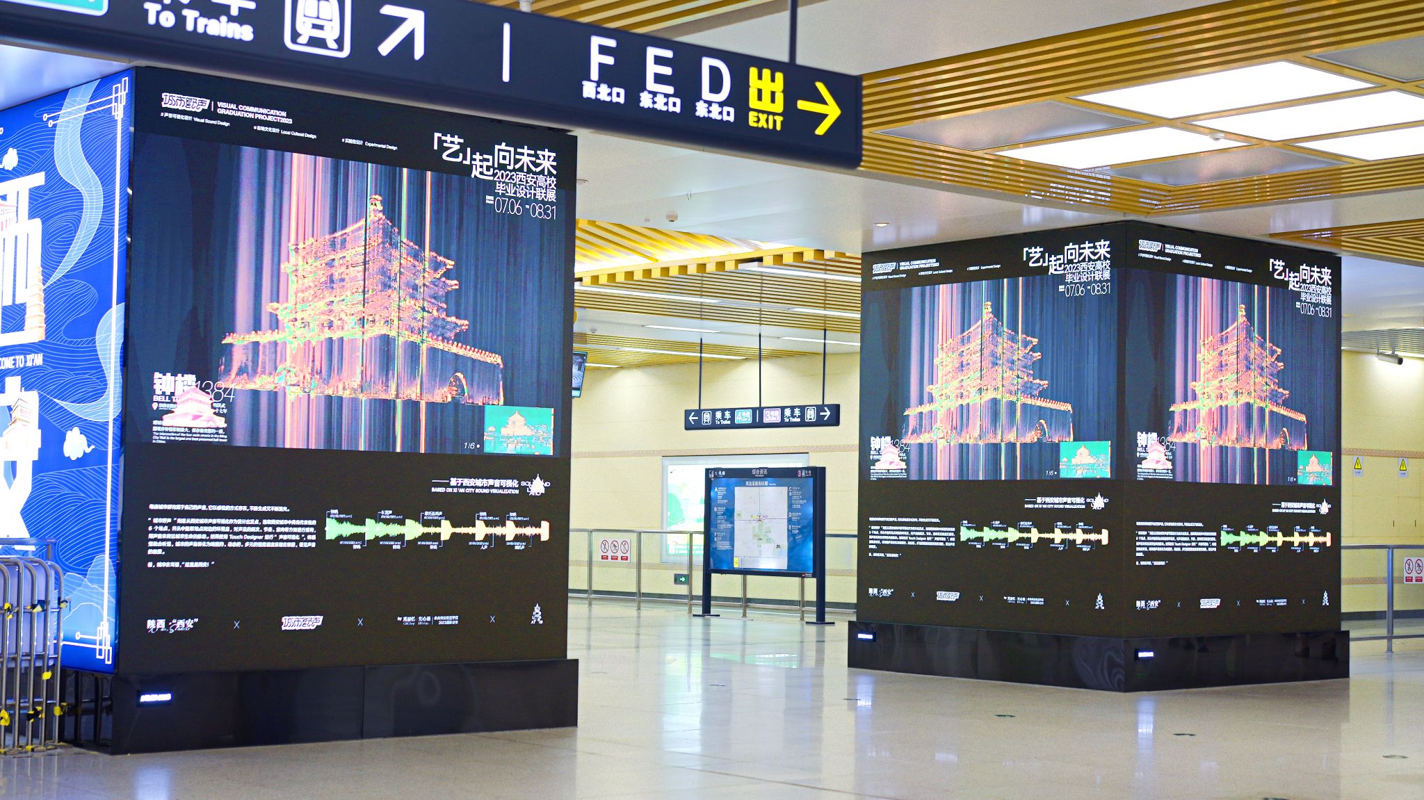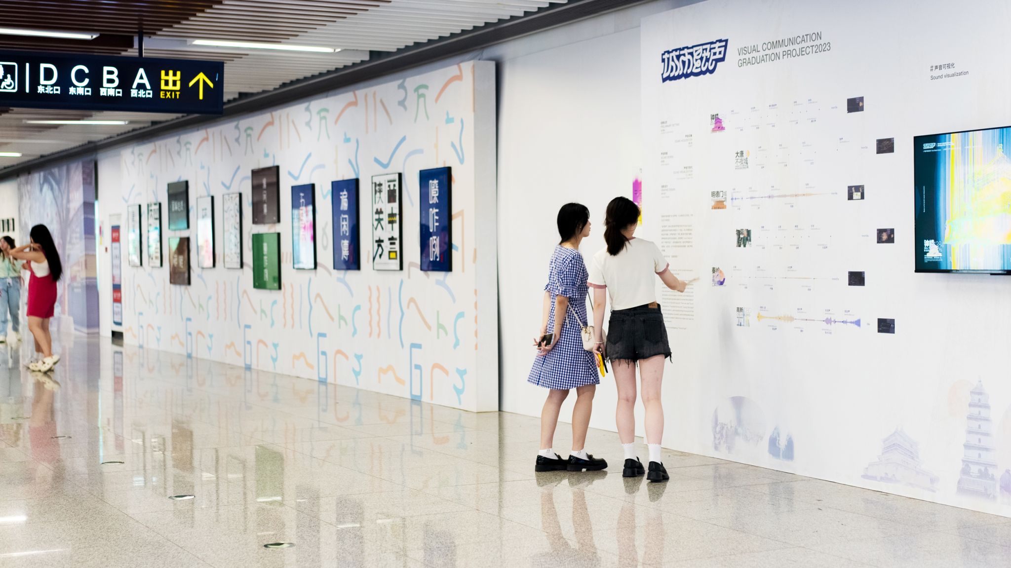 「艺」起向未来 2023西安高校毕业设计联展依托西安城市生活地标空间:西影电影园区与西安地铁空间,打破艺术与生活的界限。开展当天,新生设计力量对于社会元素的创意表达吸引了众多观众及游客驻足欣赏并打卡,体验沉浸式城市设计文化。